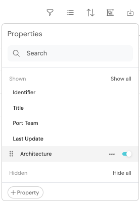 You can also hide properties from the table by clicking on the toggle on the right side of the property name.